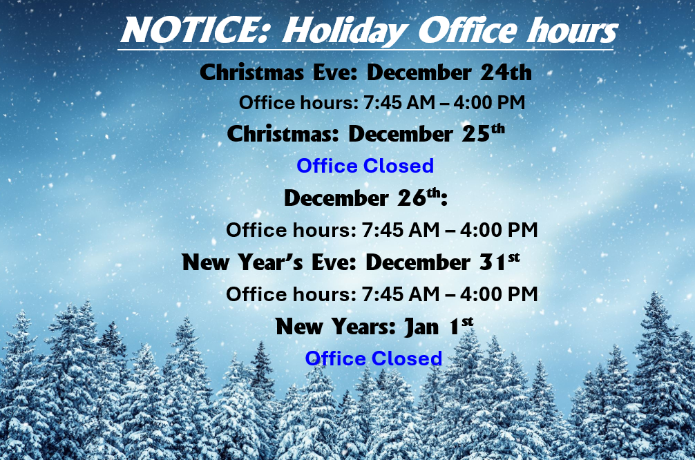We are closed for the main holidays, but are always available by phone!